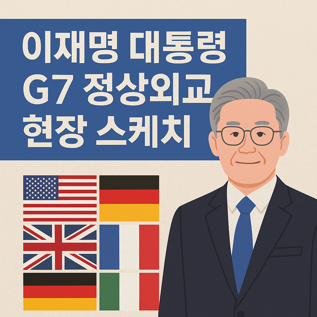G7 정상회의는 미국, 일본, 독일, 프랑스, 영국, 이탈리아, 캐나다 등 세계 주요 7개국 정상이 한자리에 모여 세계 정치·경제 질서를 논의하는 국제행사입니다. 대한민국은 비회원국이지만, 올해 이재명 대통령이 초청국 자격으로 참석하여 큰 관심을 모으고 있습니다.